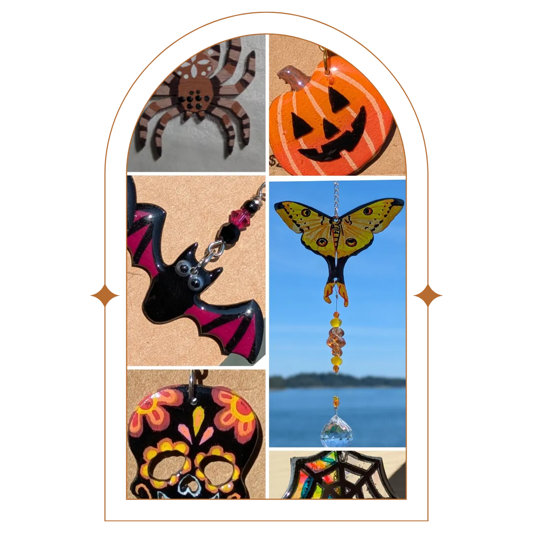 I'm a multi-media artist who loves making hand-drawn sun catchers, painted earrings, and key-chains using materials like wood, UV resin, and shrink plastic. My style is all about being colorful, whimsical, and playful.