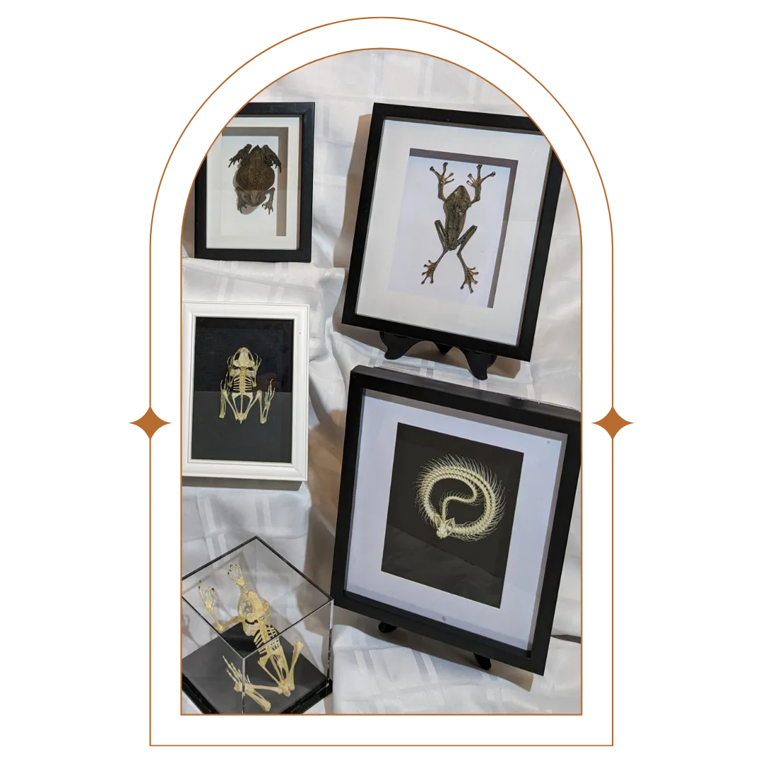 We are a small family business based in Victoria, BC, Canada, offering a wide range of framed insects, along with unique taxidermy pieces — all carefully mounted by us to highlight their natural form. We take great care in selecting where our specimens come from.